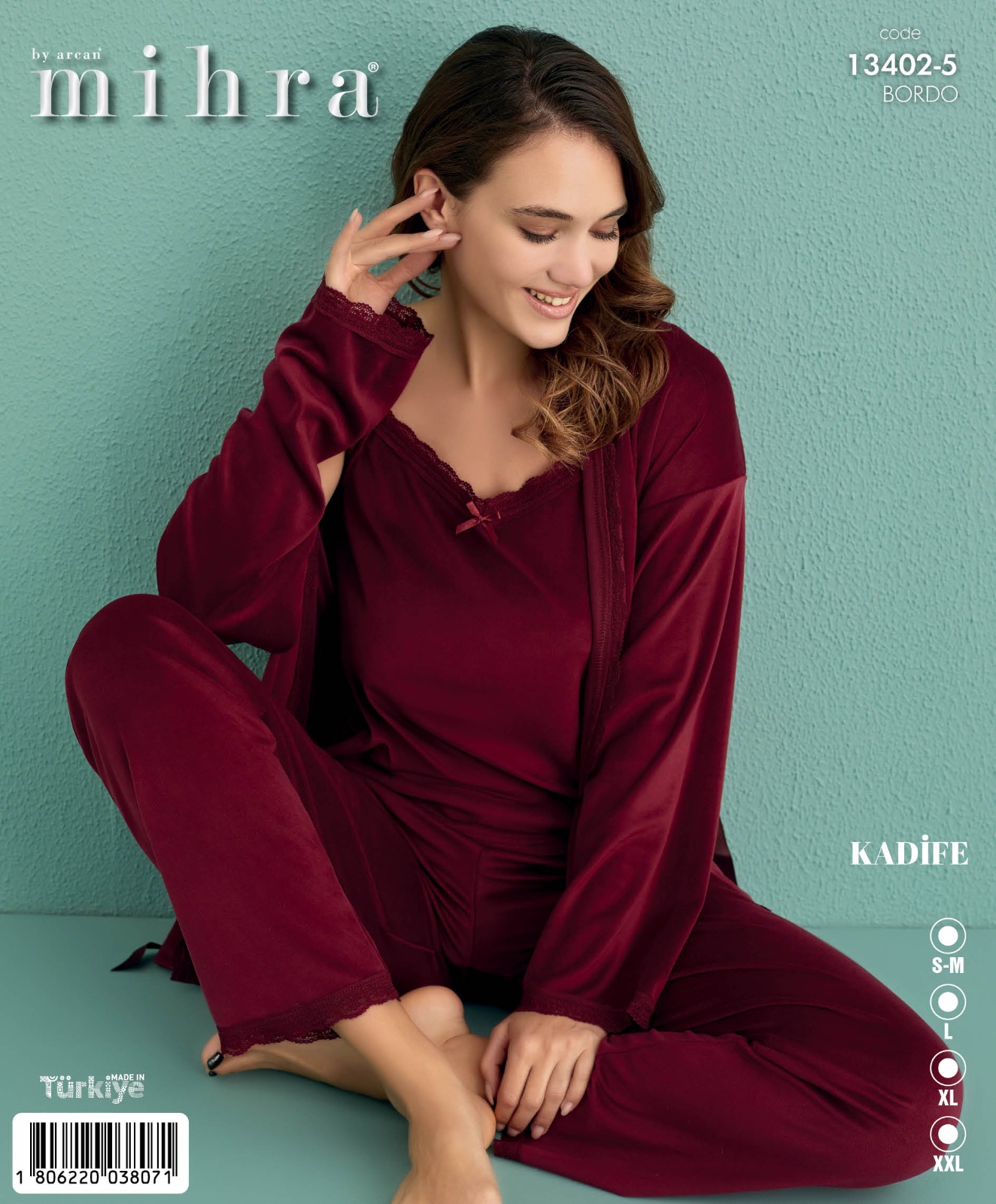 MİHRA KADİFE 3LÜ PİJAMA TAKIMI, 3 farklı parçadan oluşmaktadır. Böylece dilerseniz sadece üst kısmı ya da alt kısmı kullanabilir, dilerseniz bu parçaları farklı pijamalarla kombinleyebilirsiniz. Ayrıca paket içeriğinde bir de pijama ceketi bulunmaktadır. Ceket, aynı zamanda kumaşıyla ve şık tasarımıyla size ekstra bir sıcaklık ve konfor sağlar.
